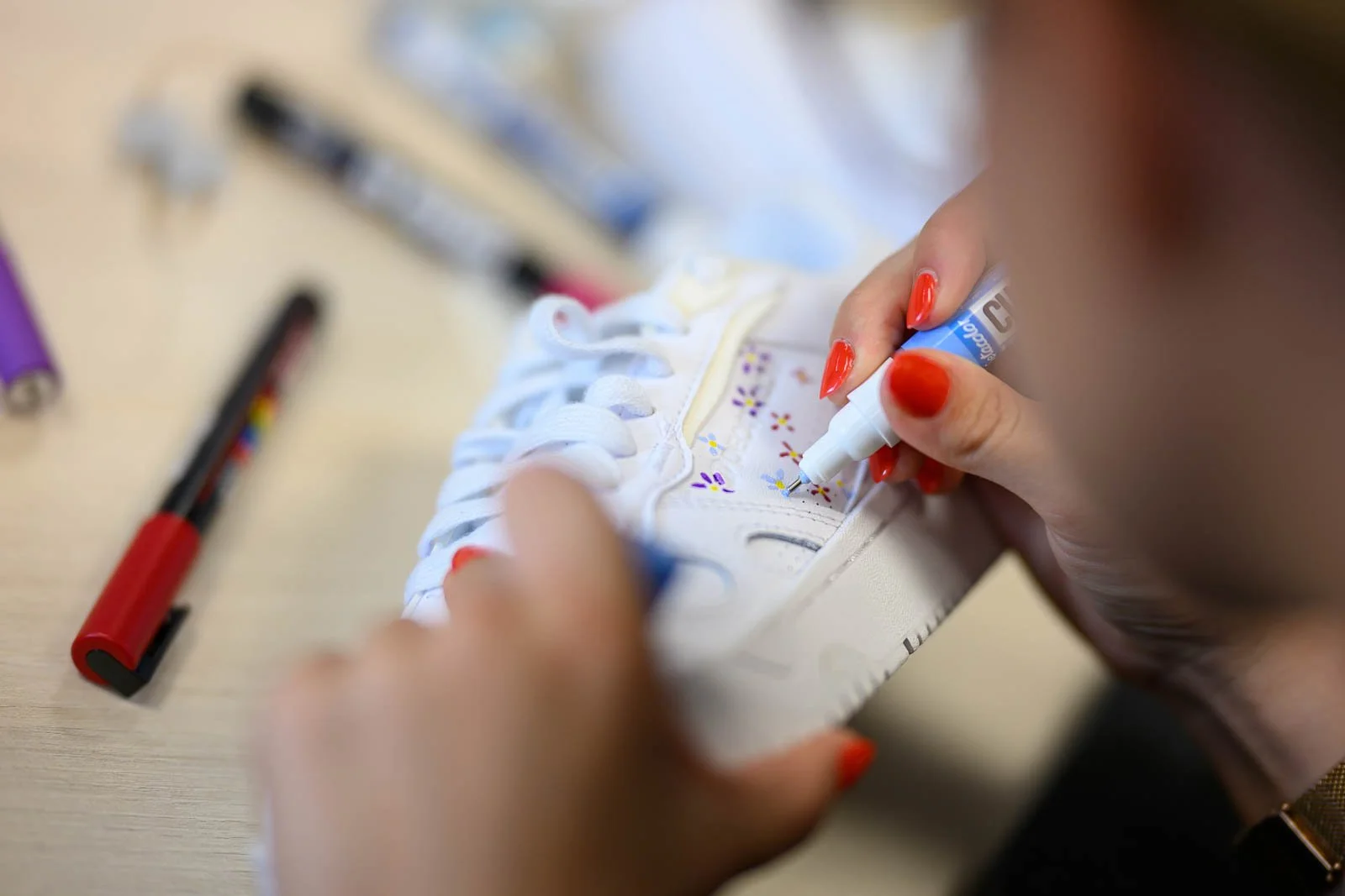 Guests were invited to design and paint their own leather shoes based on this theme, translating memories, motivation, and movement into visual form. Throughout the event, I guided participants through the creative process — from idea development to execution — ensuring that each pair became a meaningful and personal piece.